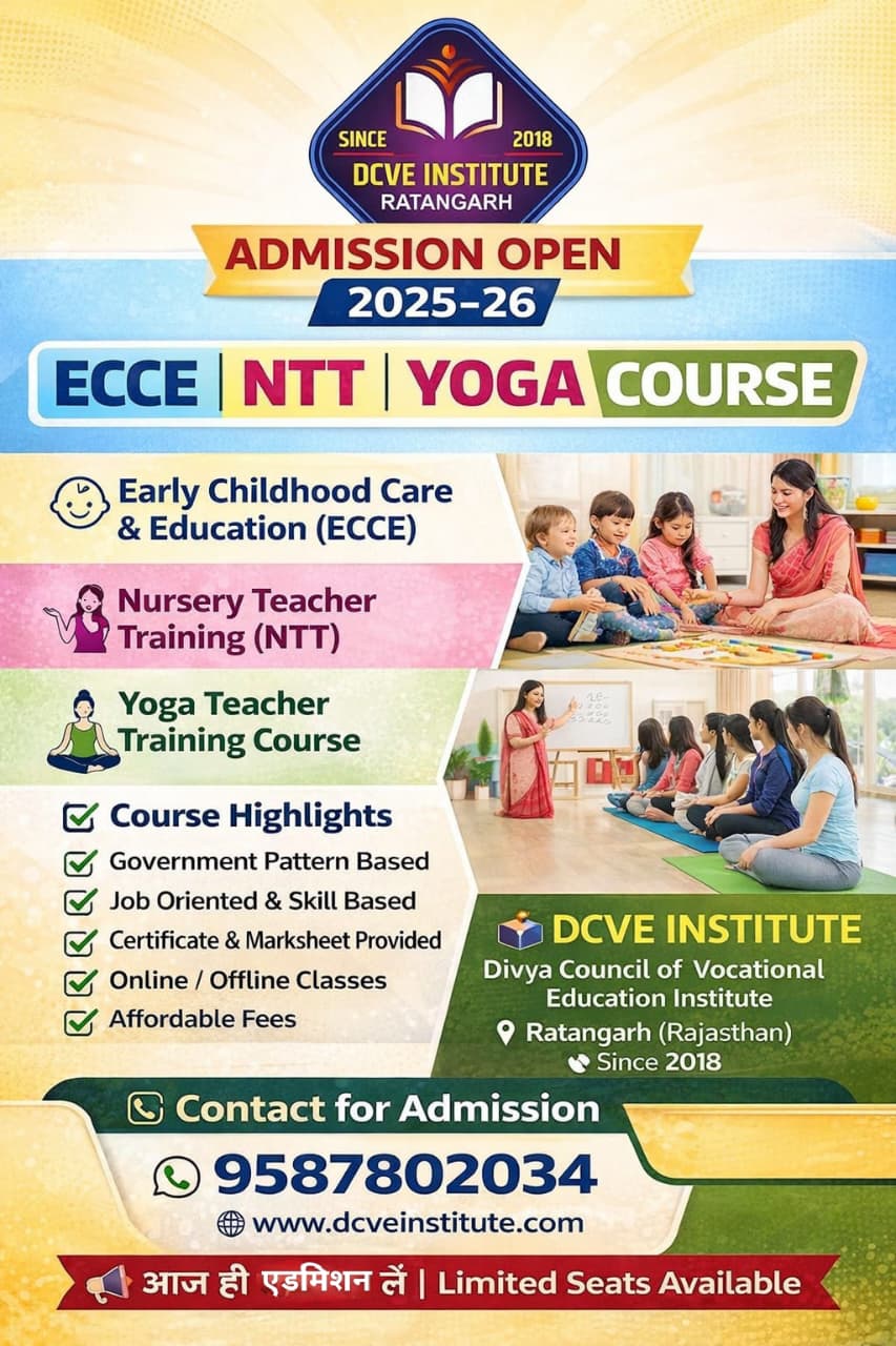 The headquarter of ‘DCVE INSTITUTE’- Vocational Skill Training Institute is situated in RATANGARH CHURU RAJASTHAN, India. Local centers have been developed all over India.